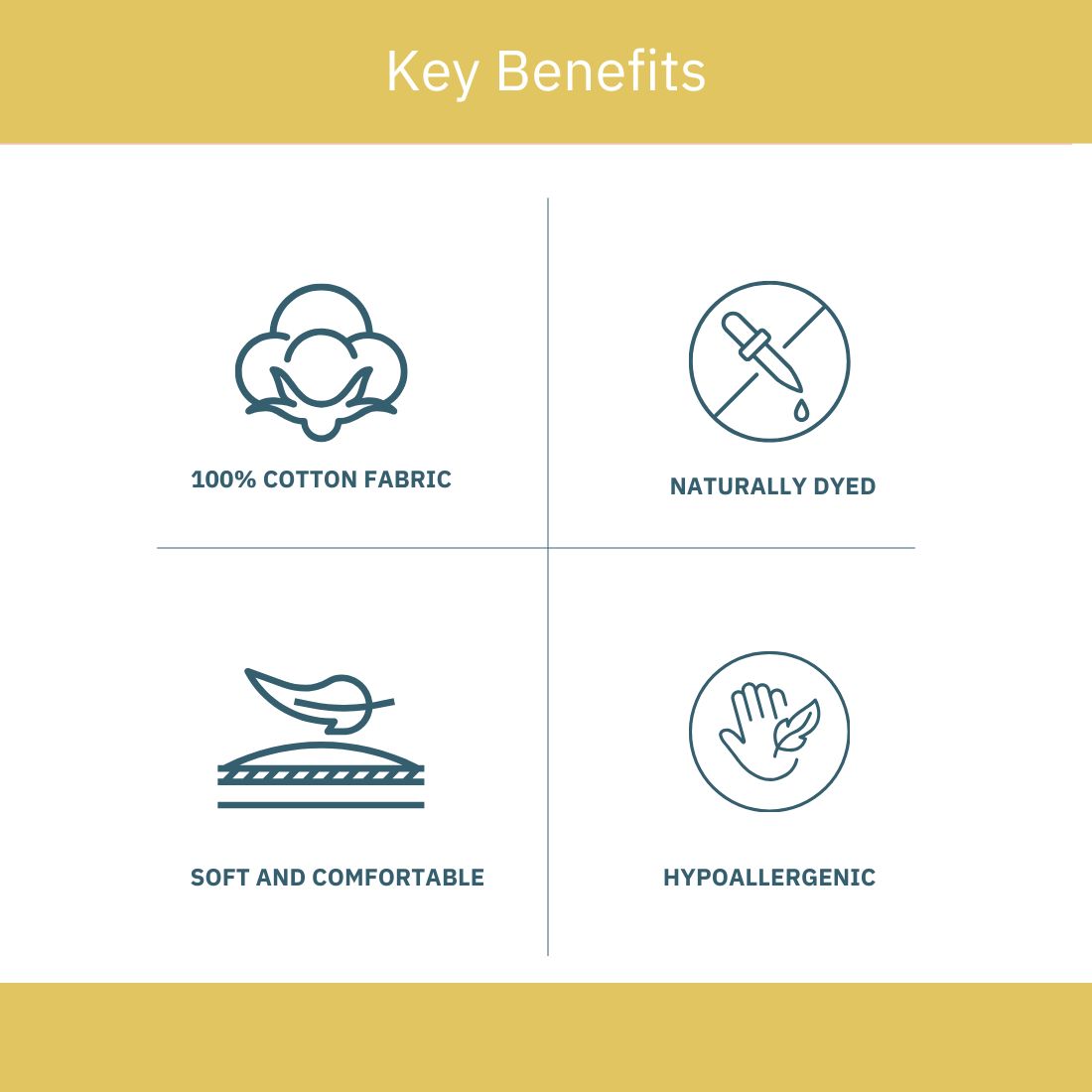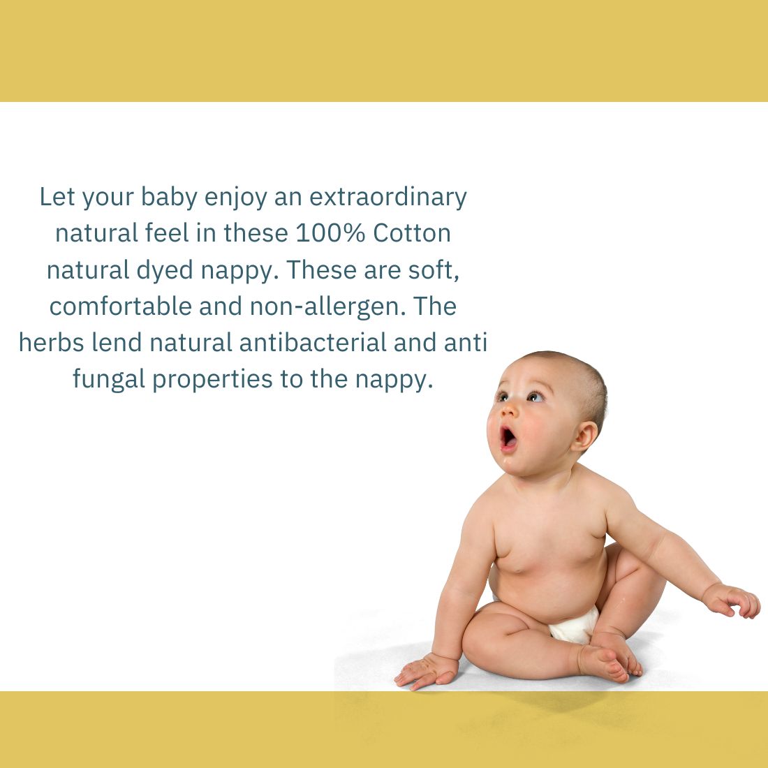Our nappies are made with GOTS certified organic cotton. Dyed with plant-based colours with antibacterial and antifungal properties. No plastic, no chemicals — just cloud-soft comfort for your newborn’s delicate skin.