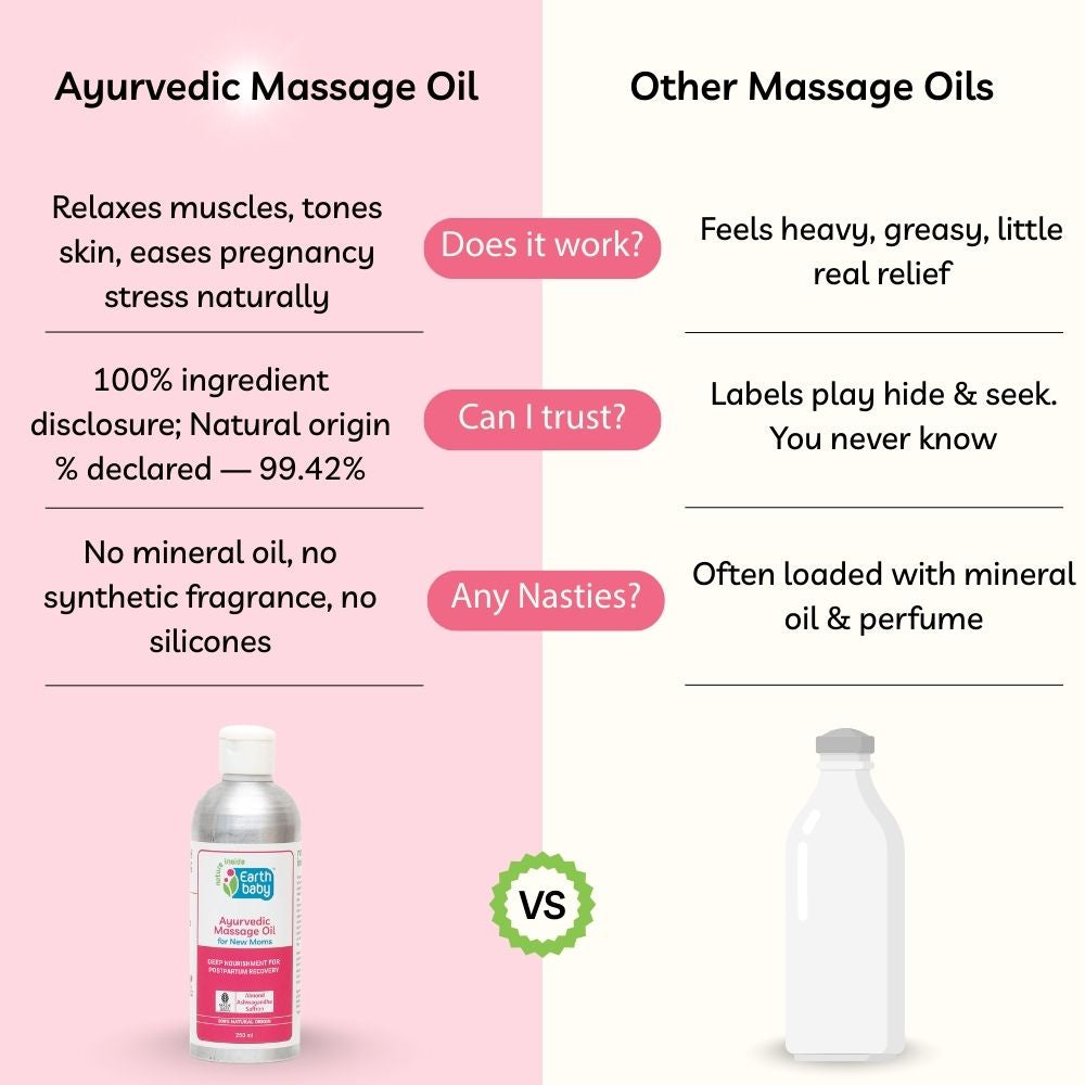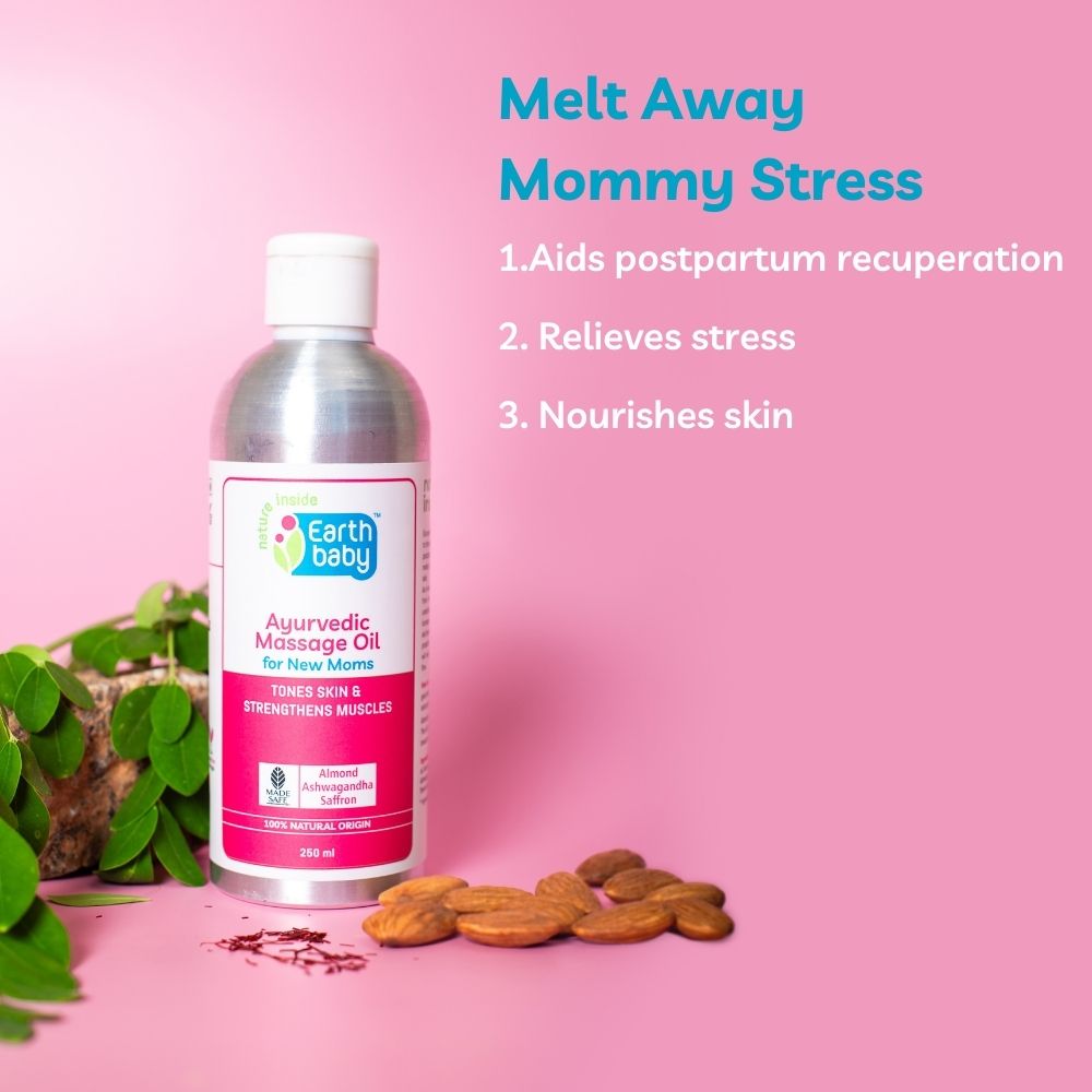 Earthbaby Ayurvedic Massage Oil helps improve blood circulation, relaxes muscles, and nourishes the skin. It is enriched with Ayurvedic herbs known for their rejuvenating and calming properties.