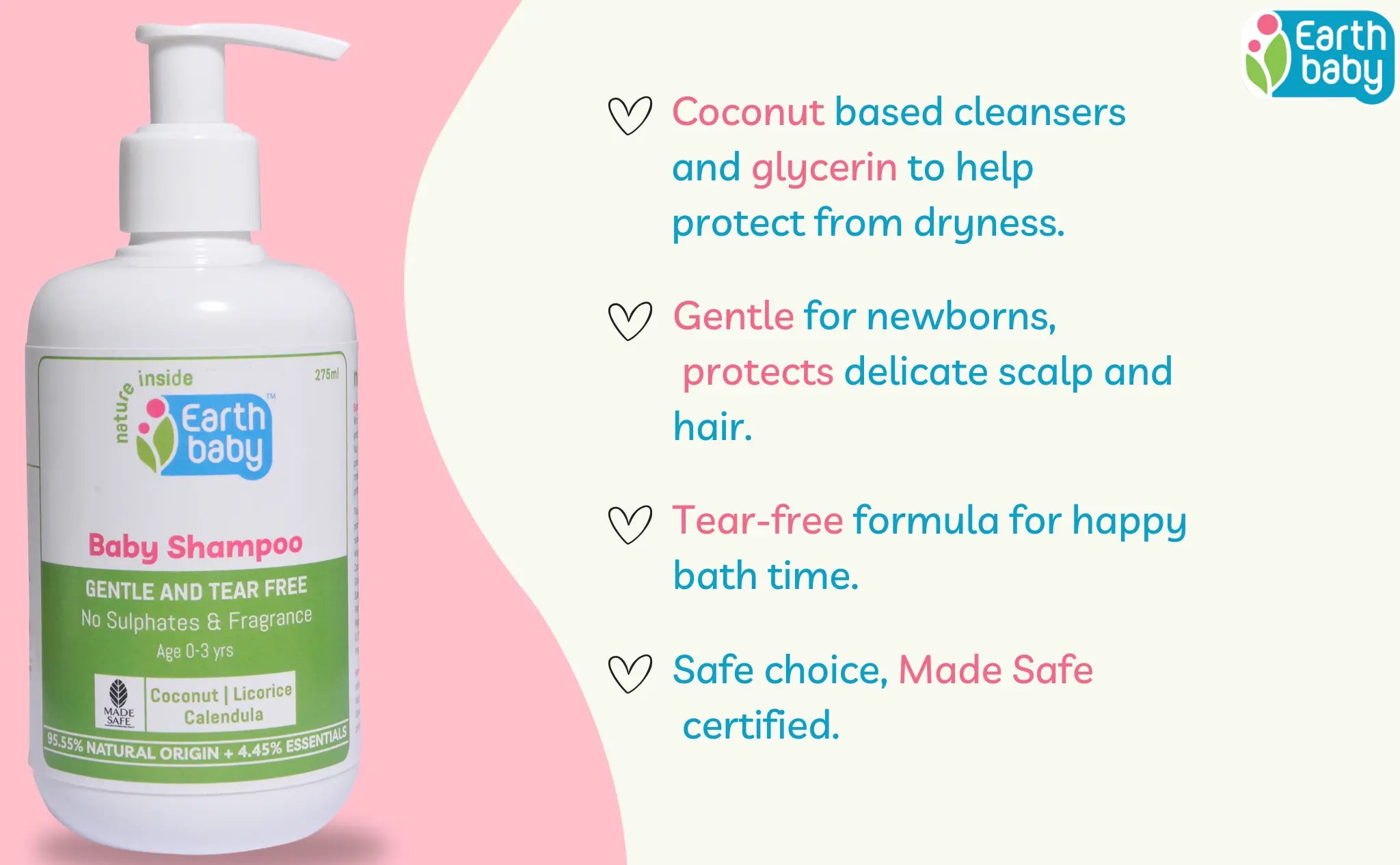 The Earthbaby Baby Shampoo is enriched with glycerine, licorice, and calendula extracts which gently cleanses and conditions your baby’s hair. It contain NO sulphates, parabens, or phthalates, making it a safe, worry-free choice, Made Safe certified.