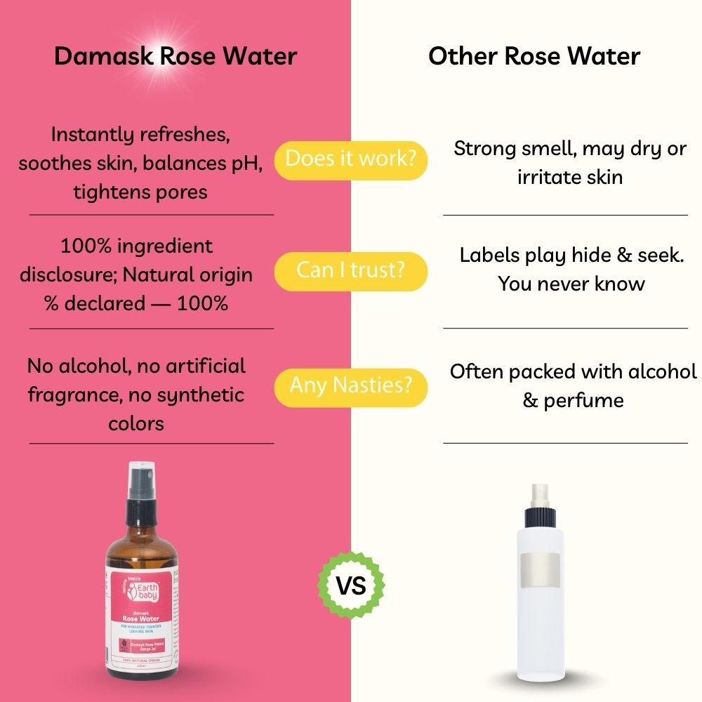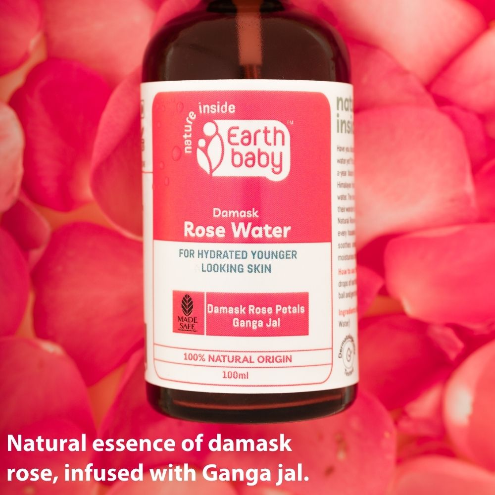 Earthbaby’s Damask Rose Water is steam-distilled from real Himalayan Damask roses, handpicked before sunrise (because that’s when they’re at their sweetest). No preservatives. No fake scents. Just pure floral goodness.