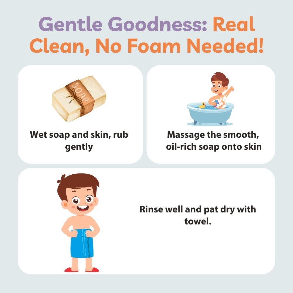 Over-scented soaps and harsh cleansers that strip moisture, trigger rashes, or leave your child’s skin feeling tight and cranky