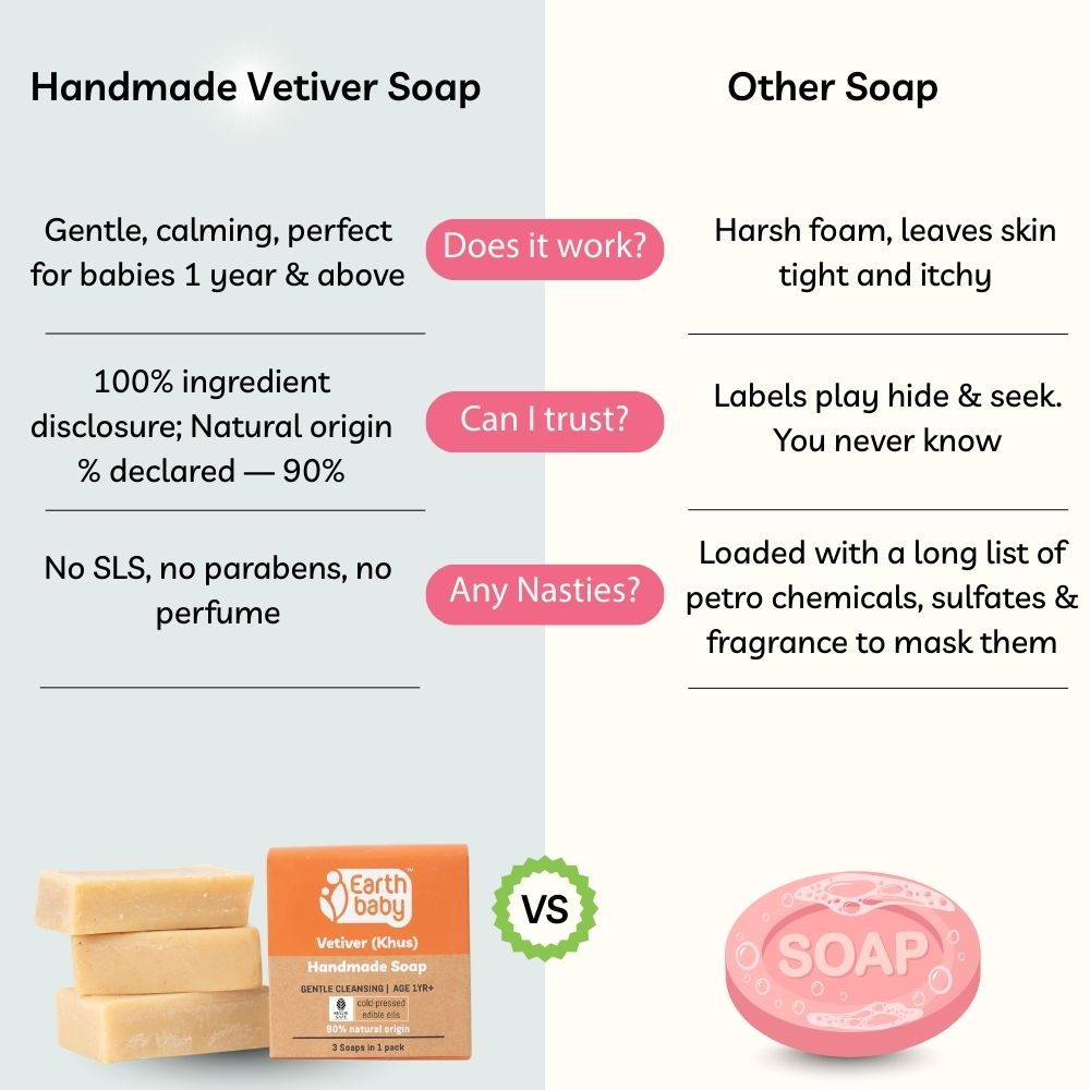 Our handmade vetiver soap is best specially formulated for kids aged 1 year and above. It's great for adults too, for all skin types!