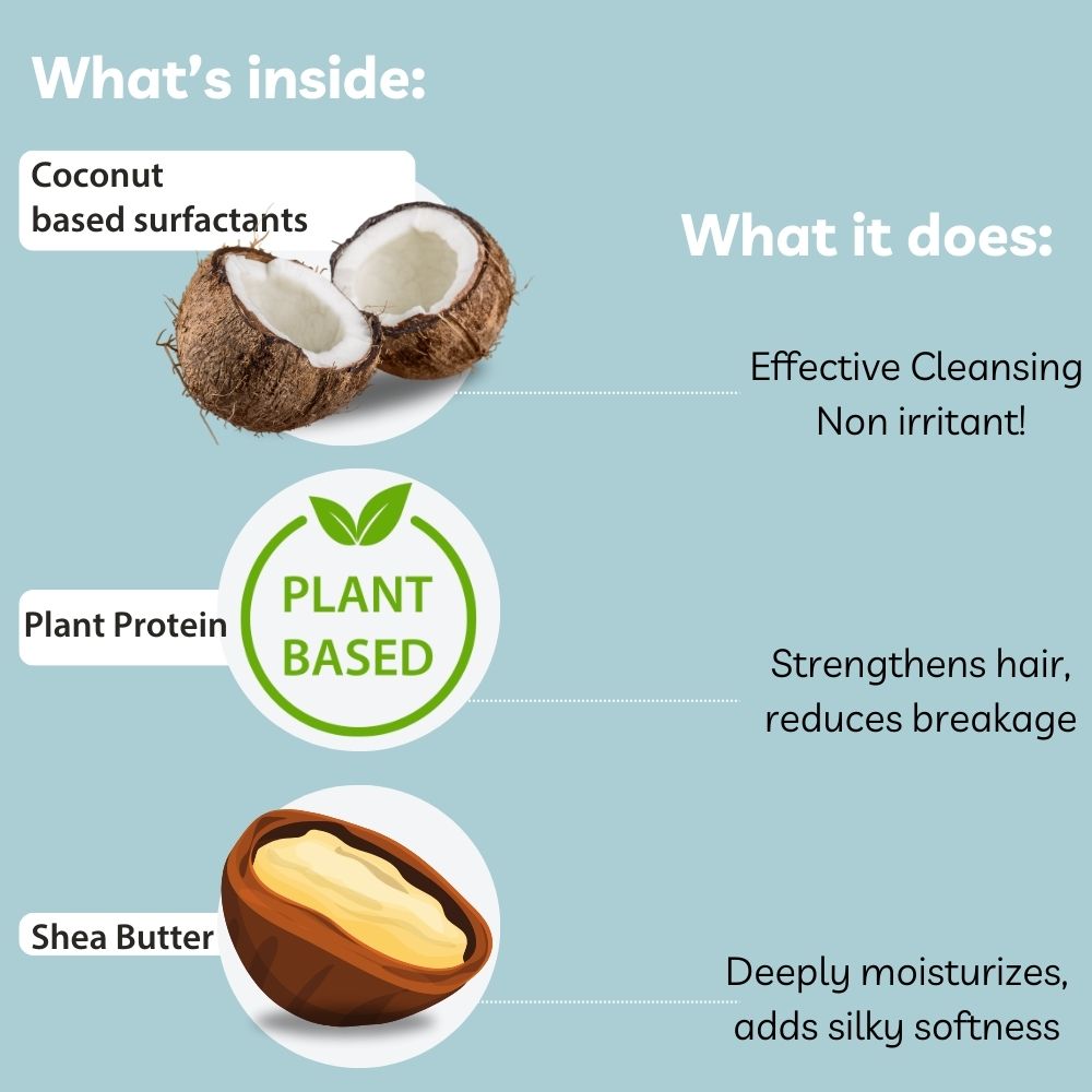 It’s 95.88% natural and made with coconut-based cleansers, jojoba, and aloe — ingredients that clean without stripping. No sulfates, no synthetic junk, and definitely no drying foam. Just a light, bubbly wash that leaves hair soft, smooth, and easy to comb.