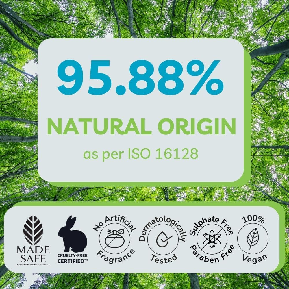 This product is 95.88% Natural Origin*. The percentage of non-natural is shown in brackets against respective ingredients: Water, Disodium Cocoyl Glutamate (0.24%), Cocamidopropyl Betaine (0.98%), Disodium Cocoamphoacetate (1.33%), Sodium Cocoyl Isethionate (0.7%), Coco Glucoside, Glycerine, Xanthan Gum, Coco-Glucoside (and) Glyceryl Oleate, Panthenyl Hydroxypropyl Steardimonium Chloride (0.19%), Acacia Senegal Gum, D-Panthenol (0.2%), Lavender Essential Oil, Polyquaternium-10 (0.1%), Sodium Gluconate, Jojoba Oil, Aloe Vera, Rice Extract. Preservative: Gluconolactone (and) Sodium Benzoate (0.38%), Propylene Glycol Caprylate. *Rated as per ISO 16128.