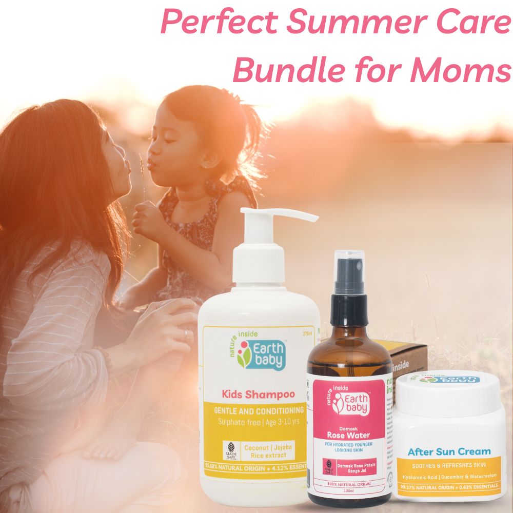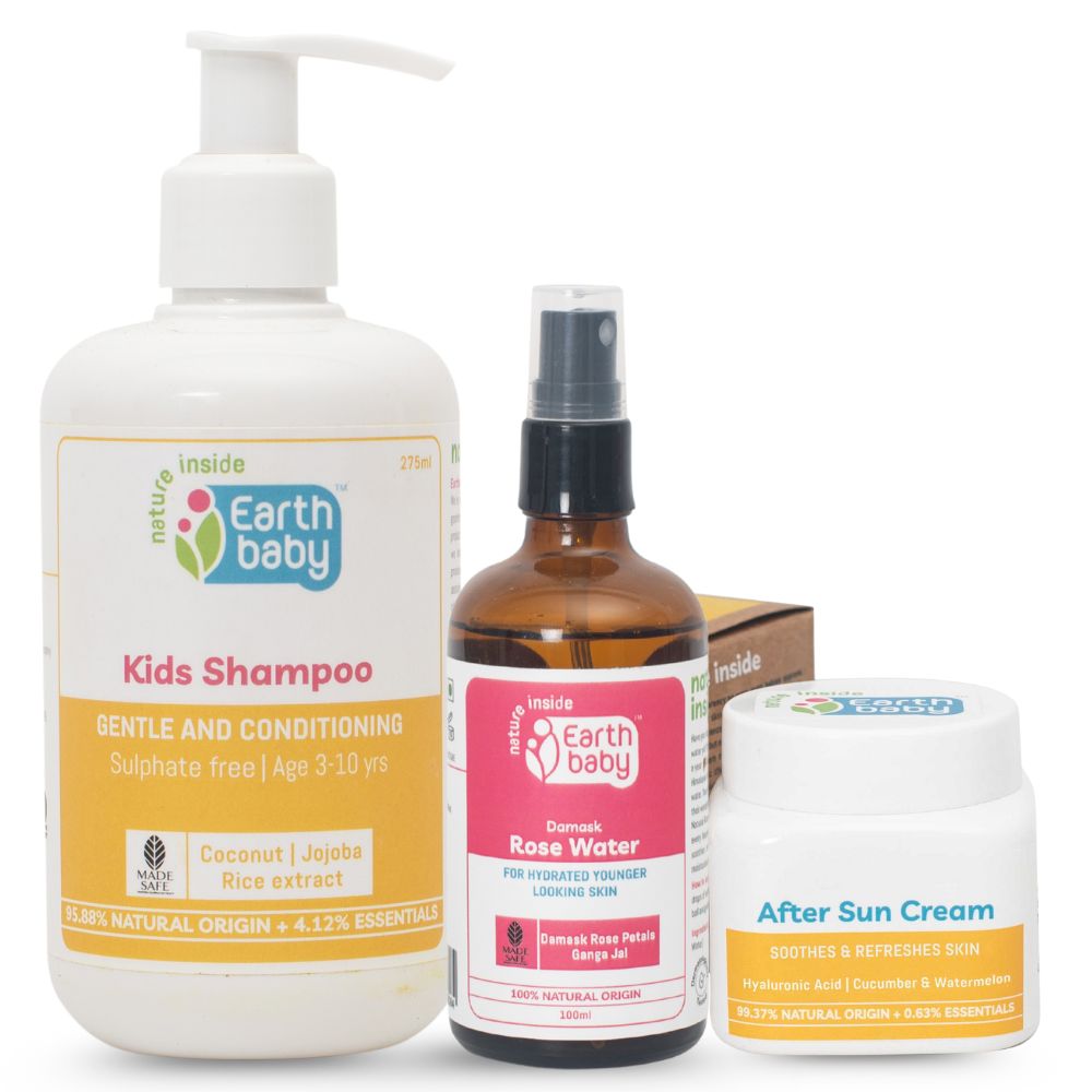 Include this summer-care bundle in your skincare routine daily and see brilliant results. Spray our Damask Rose Water to hydrate, soothe and refresh your skin, while reducing puffiness, dark circles, and excess oil. The Earthbaby After-Sun Cream reverses sun-tan after a day out. The Earthbaby Herbal Keratin Shampoo & Conditioner ensures that your scalp remains oil-free and hair turns silky soft with each application. Try them and you will see the difference soon enough!