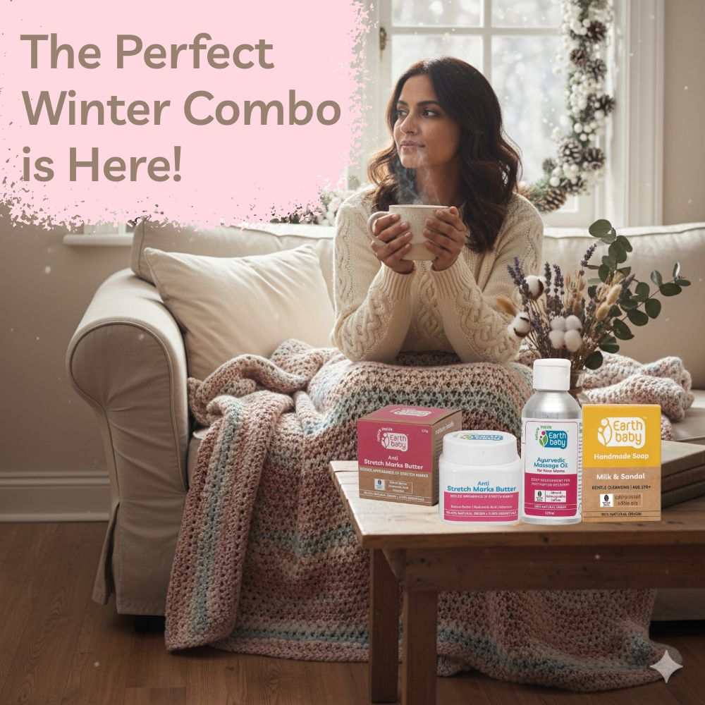 A soothing self-care ritual that celebrates the skin you’ve lived and grown in. This bundle brings together nourishing massage oil, a gentle milk & sandalwood soap, and an anti-stretch marks cream — designed to comfort, repair, and protect your skin through the dry winter months.