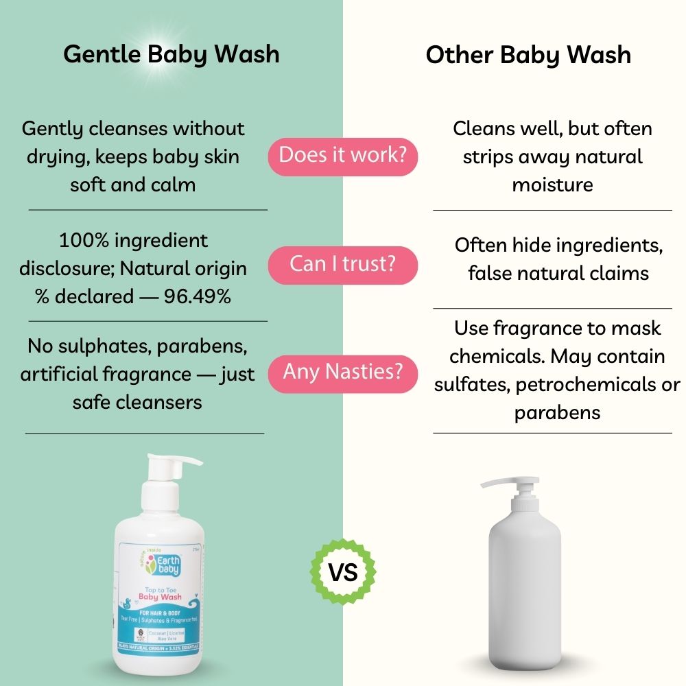 YES! Our top-to-toe wash is specially formulated for babies, knowing that their skin is so much more sensitive than ours. It is mild, gentle, tear-free and made from 96.31% natural ingredients, ensuring a safe yet effective bathing experience.